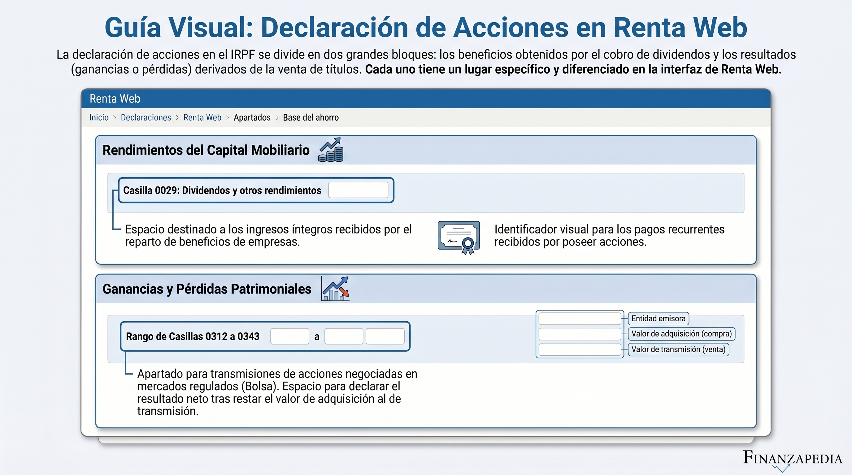 Dato clave: La obligación de pagar impuestos surge cuando se venden las acciones, no cuando se compran. Si tienes acciones en cartera pero no las has vendido, no tienes nada que declarar por ellas este año.
