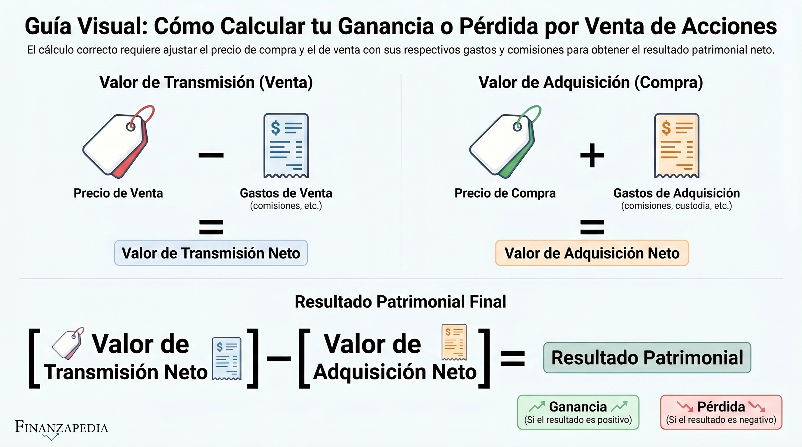 Cuando vendes acciones, Hacienda quiere saber si has ganado o perdido dinero con esa operación. El cálculo es el siguiente: